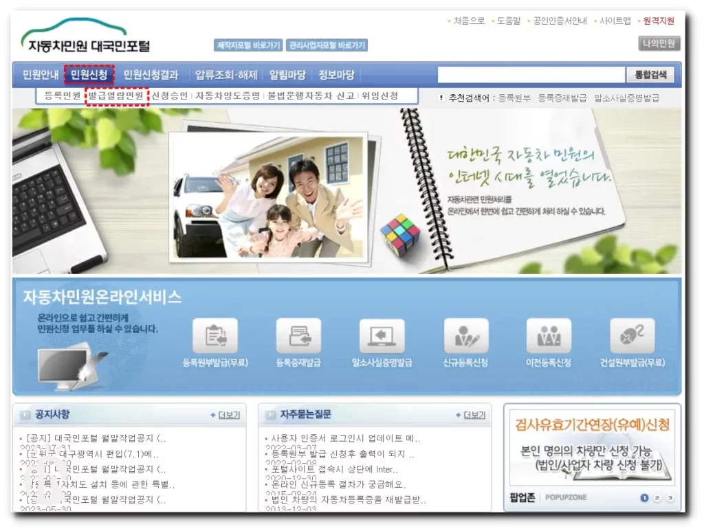 차량번호와 소유자 알고 있다면 자동차 등록 원부 조회할 수 있습니다. 발급 비용은 무료입니다. <자동차민원 대국민포털> 홈페이지에 접속합니다.